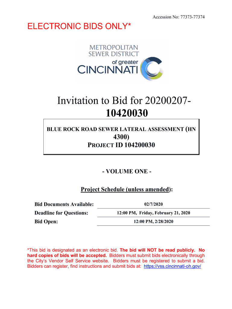 Accession No: 7737377374ELECTRONIC BIDS ONLY×Invitation to Bid for 2020020710420030