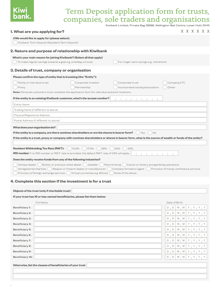 Get the free Term Deposit application form for trusts, companies ... - Kiwibank