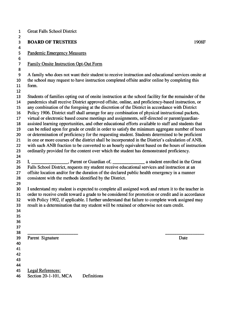 Get the free New Board Policy 1908F Family Onsite Instruction Opt-Out Form