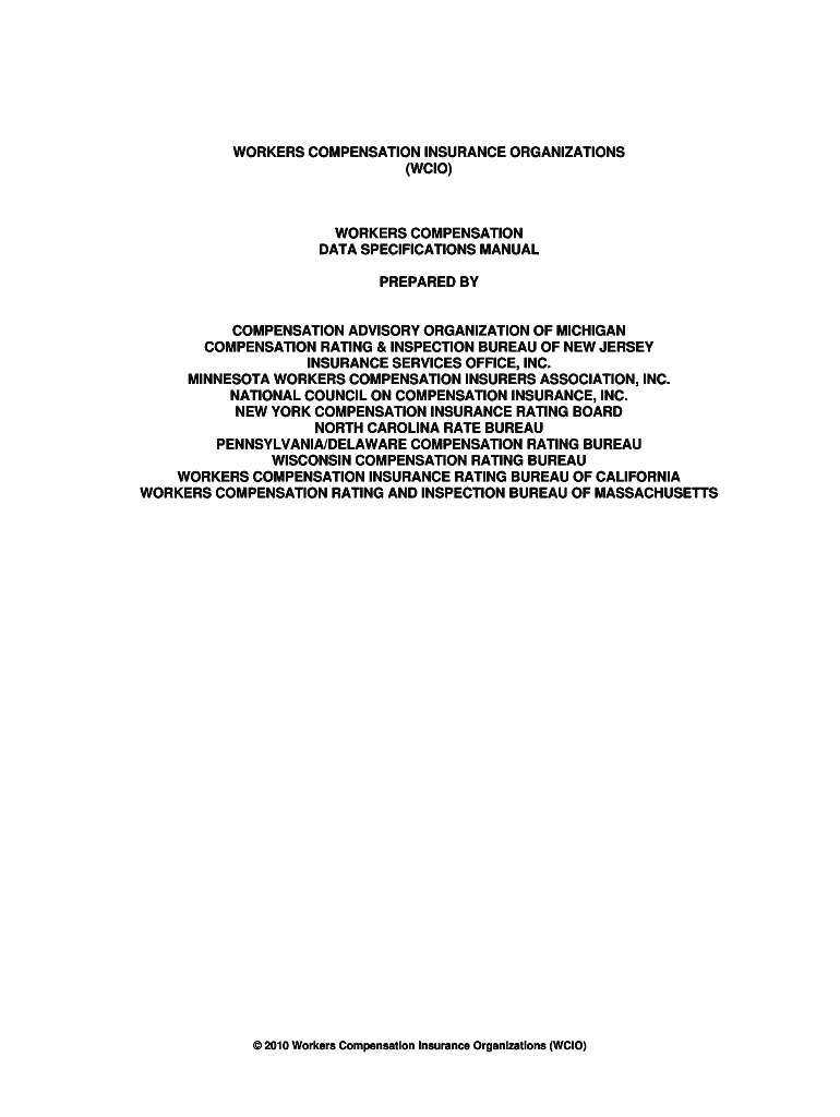 WORKERS COMPENSATION INSURANCE ORGANIZATIONS (CIO)WORKERS COMPENSATION DATA SPECIFICATIONS MANUAL PREPARED COMPENSATION ADVISORY ORGANIZATION OF MICHIGAN COMPENSATION RATING & INSPECTION BUREAU OF