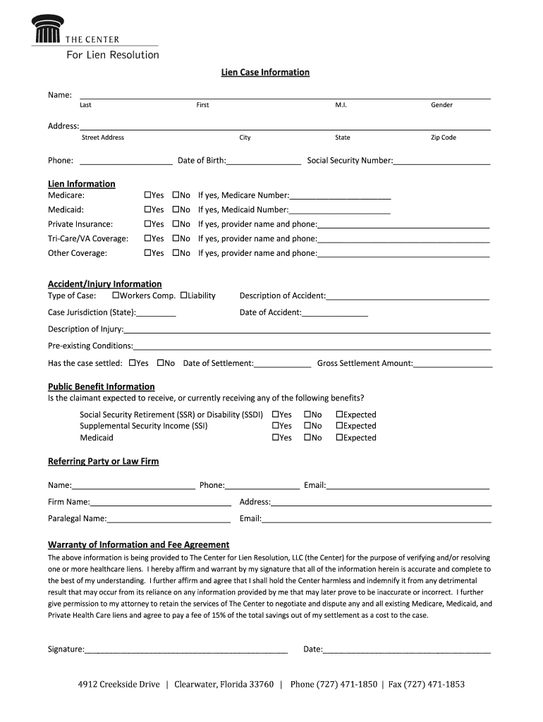 While specific deadlines vary by case, it’s essential to submit the Lien Case Information Form promptly to avoid delays in lien resolution. Check with your representative or legal counsel for specific deadlines.