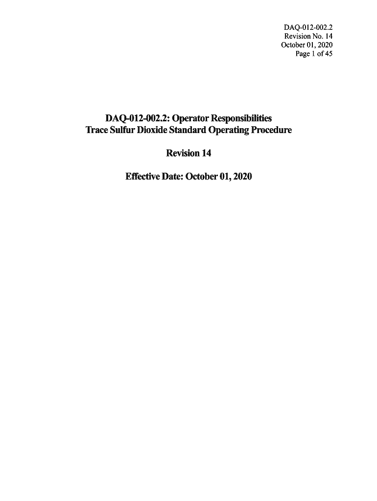 Get the free Standard Operating Procedures for Sulfur Dioxide (SO2 ...