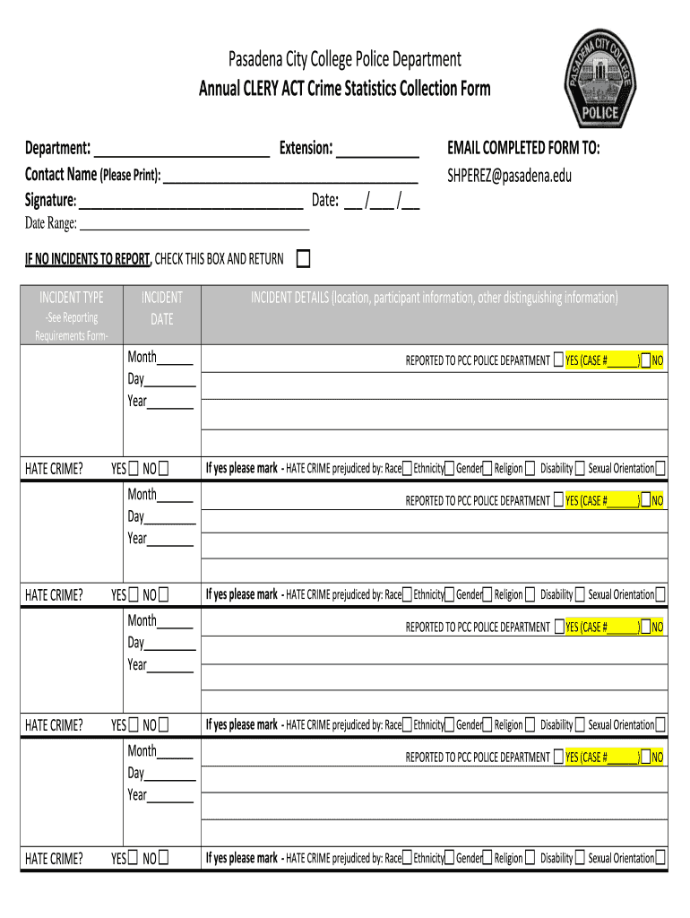 Get the free Crime Stats Collection Form - Pasadena City College - pasadena