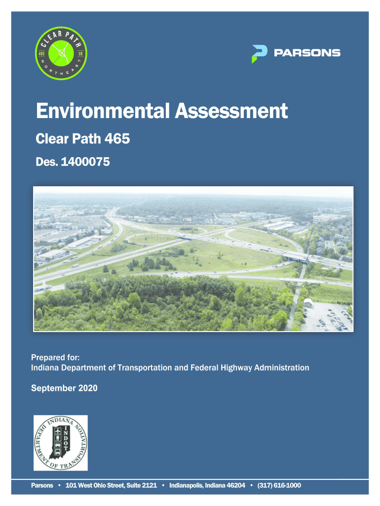Environmental Assessment Clear Path 465 DES. 1400075Prepared for: Indiana Department of Transportation and Federal Highway Administration September 2020Parsons 101 West Ohio Street, Suite 2121 Indianapolis,
