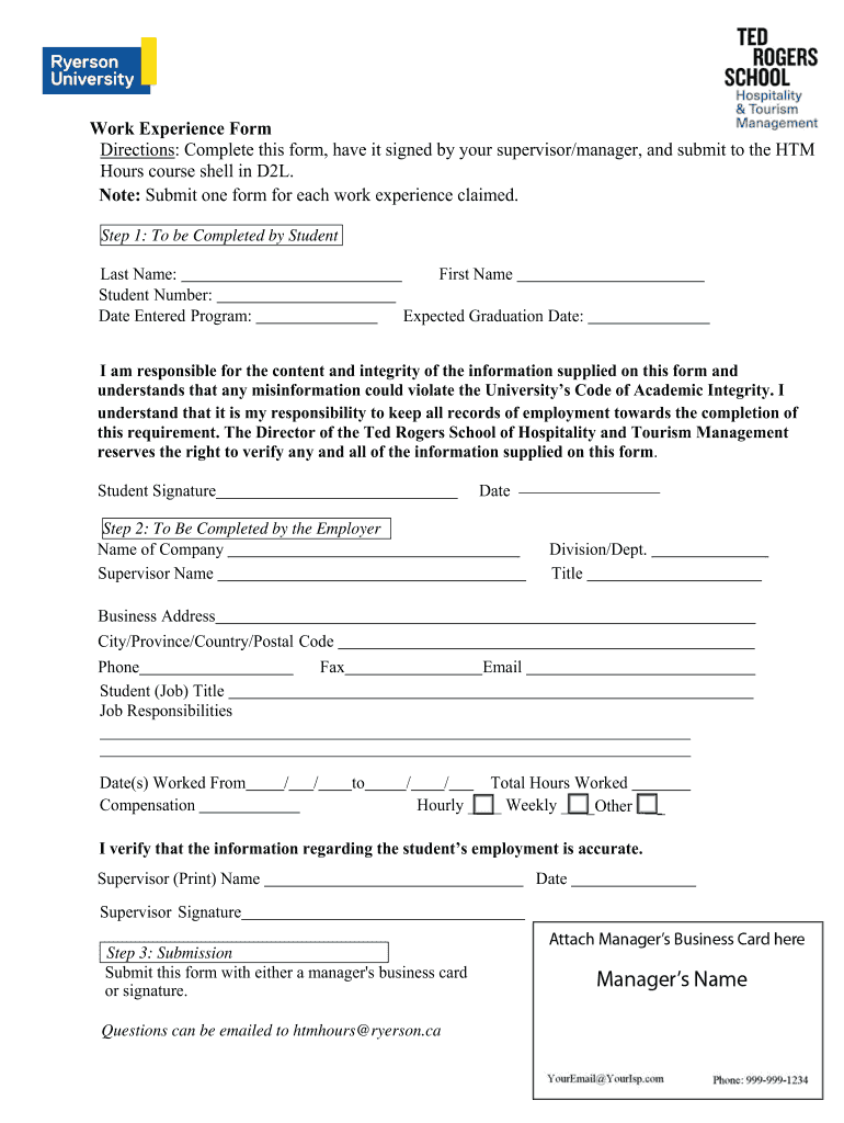 Get the free PDF Work Experience Form Directions: Complete this form, have it ...