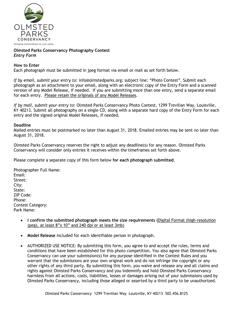 Each photograph must be submitted in JPEG format via email or mail as set forth below.