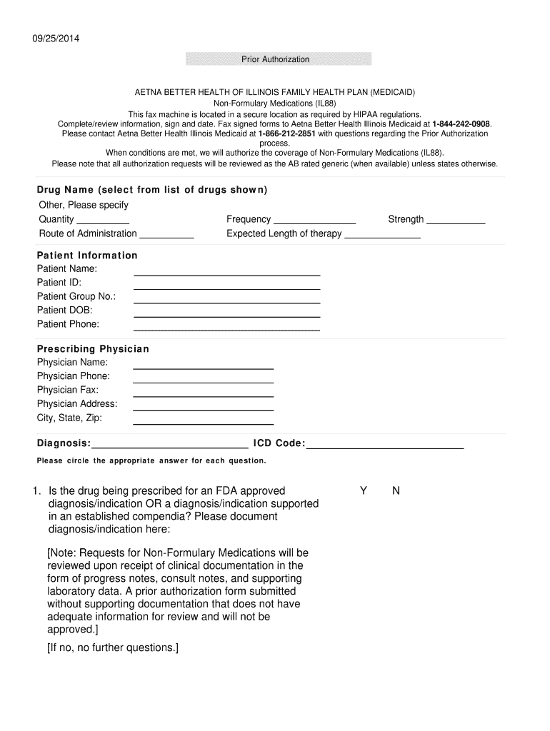 Prior AuthorizationAETNA BETTER HEALTH OF ILLINOIS FAMILY HEALTH PLAN (MEDICAID)