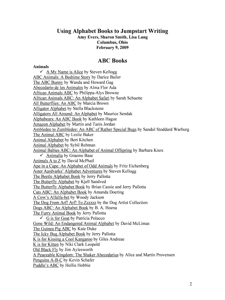 Get the free Using Alphabet Books to Jumpstart Writing