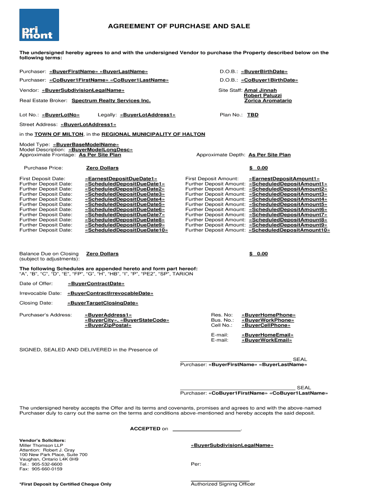 AGREEMENT OF PURCHASE AND Palette undersigned hereby agrees to and with the undersigned Vendor to purchase the Property described below on the