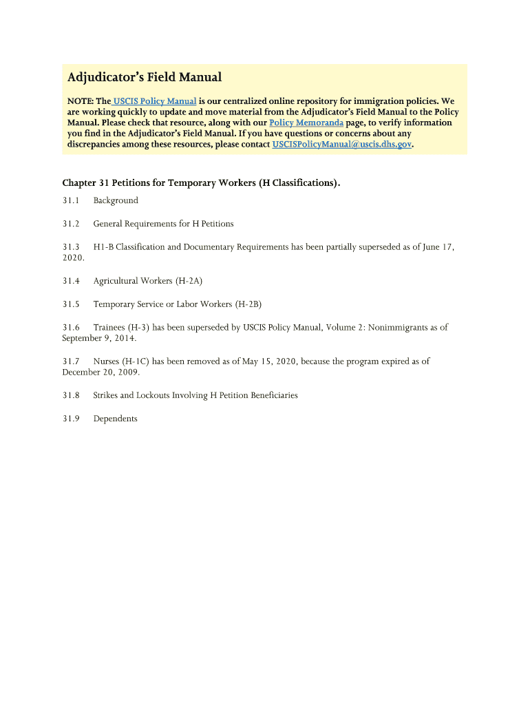 NOTE: The USCIS Policy Manual is our centralized online repository for immigration policies. We