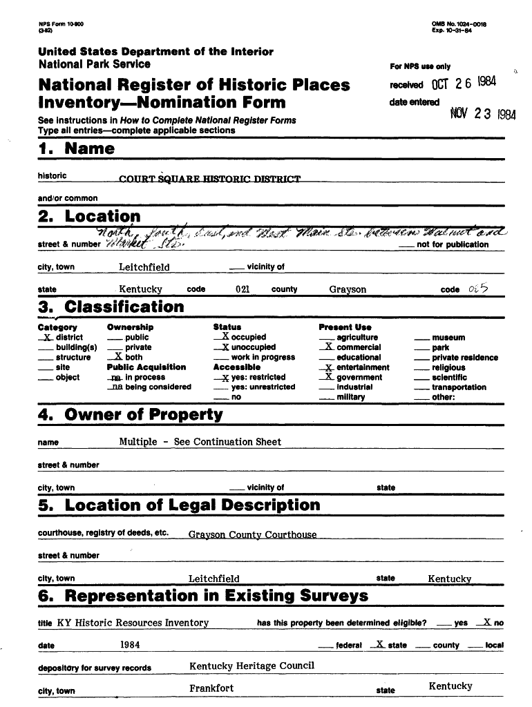 NPS Form 10900 (382)0 MB No. 10240018 Exp. 103184United States Department of the International Park ServiceNow NFS use only×National Register of Historic Places Inventory Nomination Form received