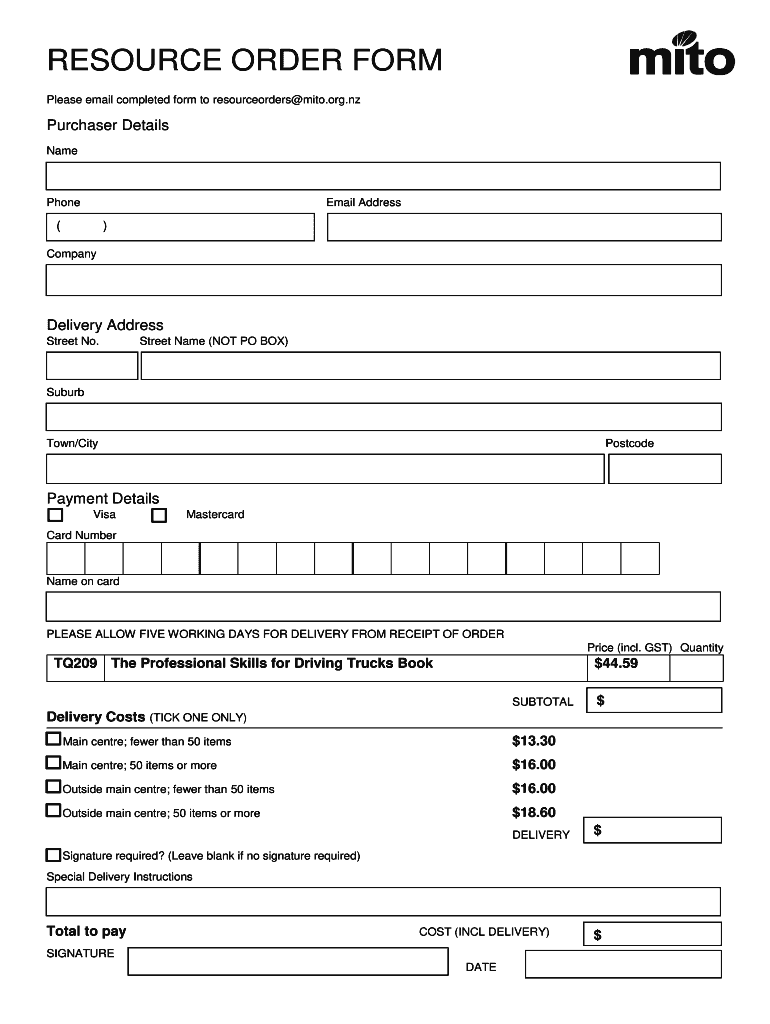 Please email completed form to resourceorders@mito.org.nzPurchaser Details