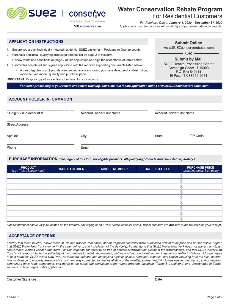Get the free Ensure you are an individually metered residential SUEZ customer in Rockland or Oran...
