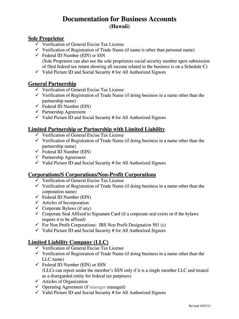 The Business Account Card is a business form used by entities in Hawaii and Las Vegas to open business accounts and conduct transactions.