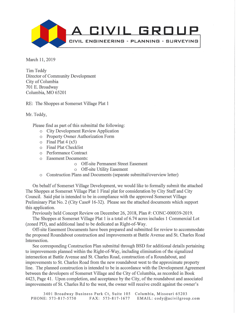 701 E. Broadway, Columbia, MO Case #:Submission Date:Planner Assigned:(573) 8747239 planning@como.govFinal plats of major