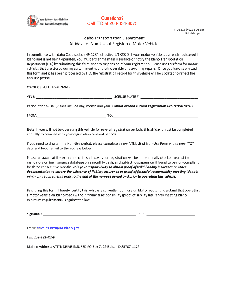 Obtain the ID ITD 3119 form from the relevant authority or website.