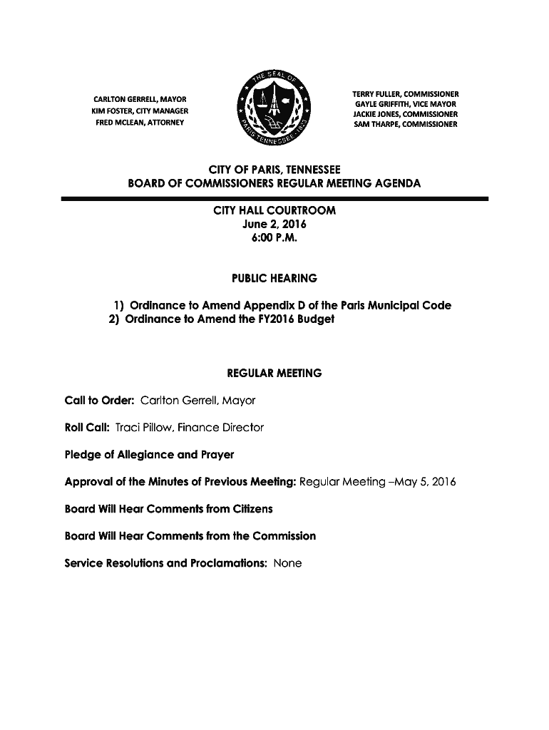 FRED McLean, ATTORNEYCITY OF PARIS, TENNESSEE