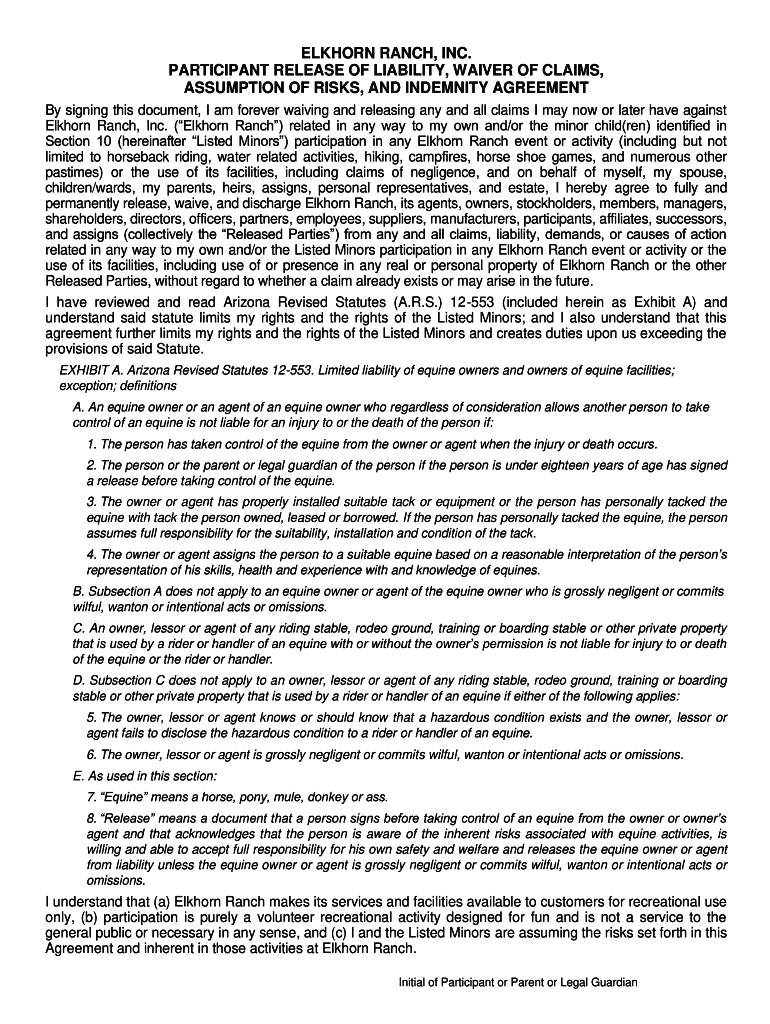 PARTICIPANT RELEASE OF LIABILITY, WAIVER OF CLAIMS,