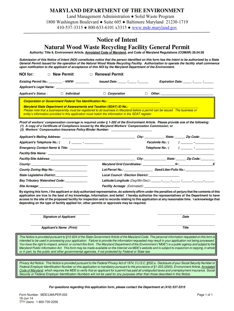 Get the free Natural Wood Waste Recycling Facility General Permit - mde state md