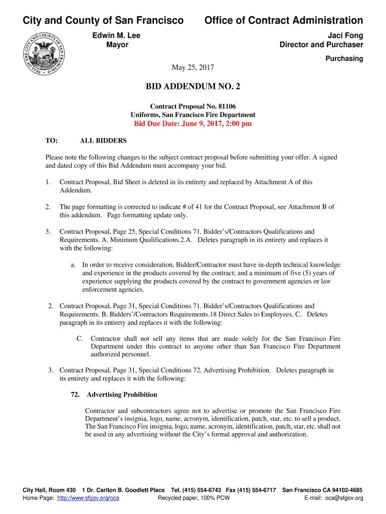 Get the free CITY & COUNTY OF SAN FRANCISCO - Official Proposal & Bid ... - missi...