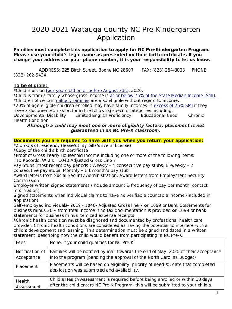 Instructions for the NC Pre-Kindergarten - Buncombe Partnership for Children form