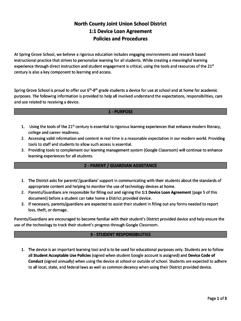 Get the free North County Joint Union School District 1:1 Device Loan ...