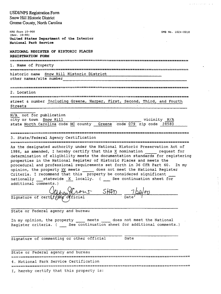 National Park Service of the International REGISTER OF HISTORIC PLACES