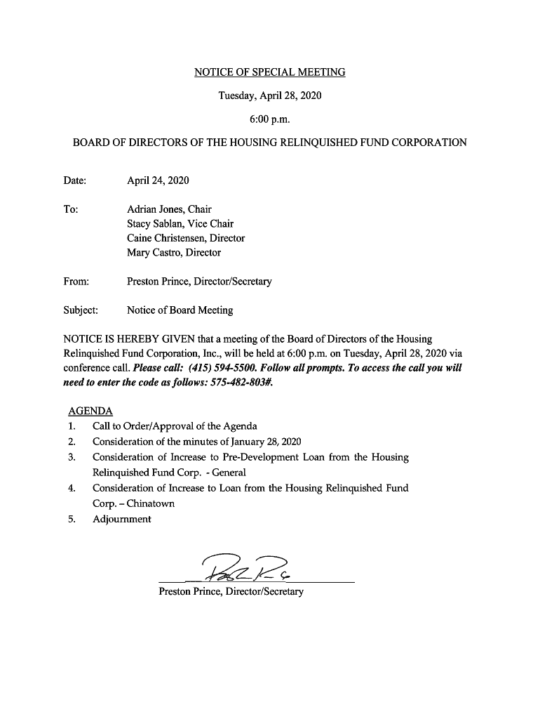 Get the free Tuesday, April 28, 2020 BOARD OF DIRECTORS OF THE HOUSING ...