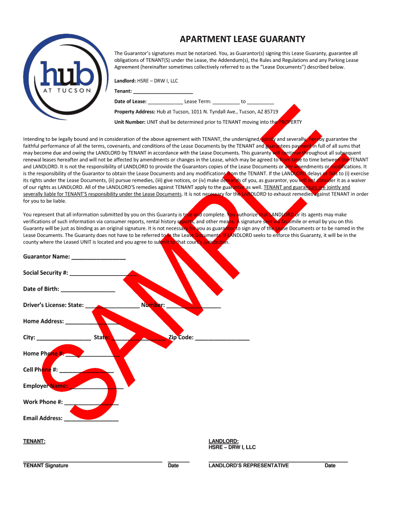 APARTMENT LEASE GUARANTY The Guarantors signatures must be notarized. You, as Guarantor(s) signing this Lease Guaranty, guarantee all obligations of TENANT(S) under the Lease, the Addendum(s), the