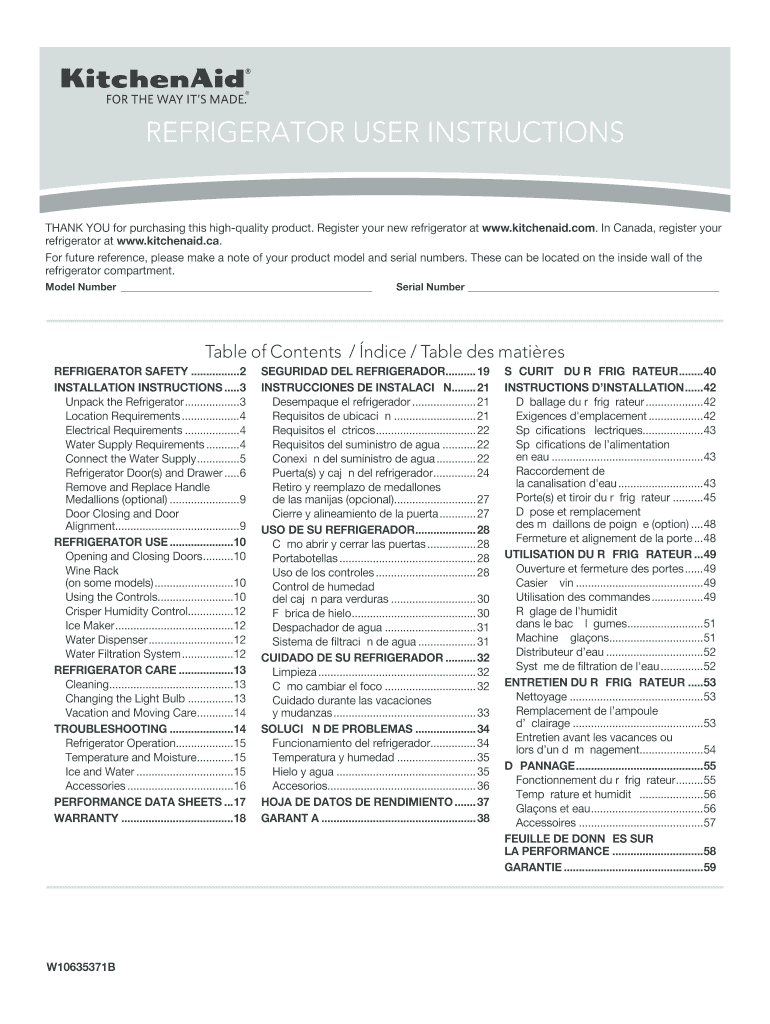 How to fill out kitchenaid refrigerator instruction manual