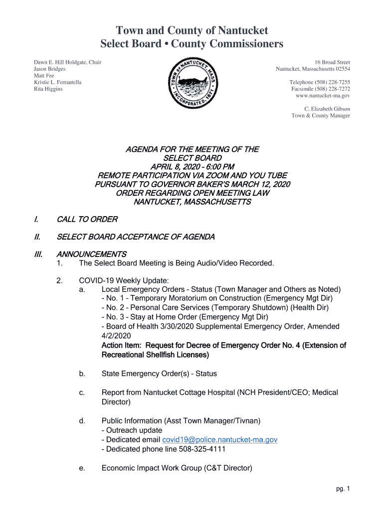 Get the free Select Board Statement to the Nantucket Community - Town of ...