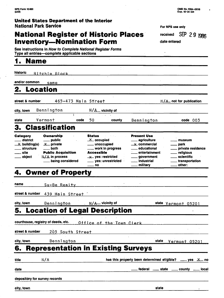 OMB No. 10240018 Exp. 103184NFS Form 10900 (382)United States Department of the International Park ServiceNow NFS use onlyNational Register of Historic Places Inventory Nomination Form received SEP