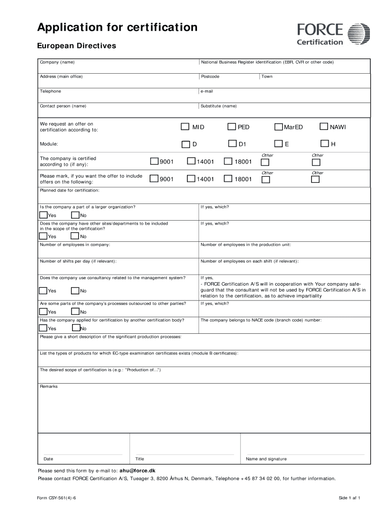 Application for certification