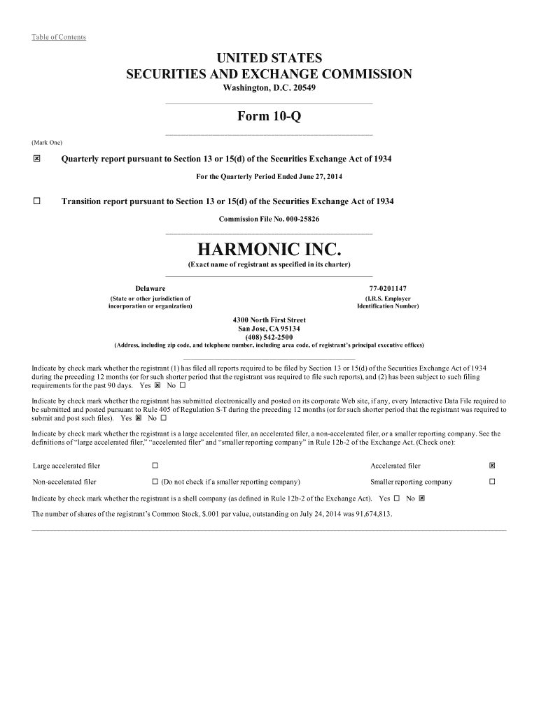 Harmonic Inc - Investor refers to a financial entity or document associated with the investment activities of Harmonic Inc, which may involve reporting on their financial performance, investments, or equity stakes.