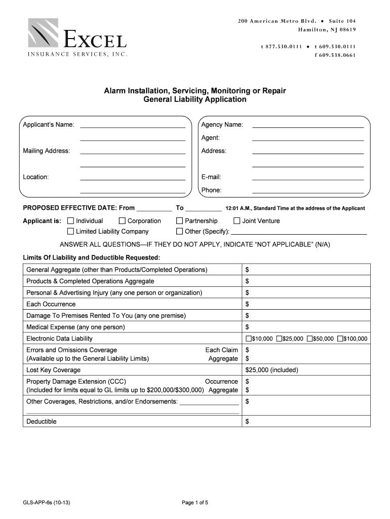 How to Fill Out the General Liability Application for Alarm Businesses Online