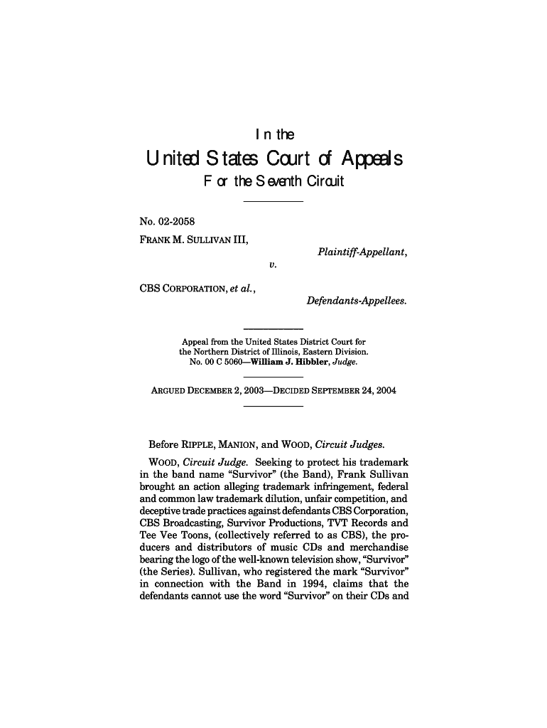 In reunited States Court of Appeals For the Seventh Circuit No. 022058 FRANK M. SULLIVAN III, PlaintiffAppellant, v. CBS CORPORATION, et al., DefendantsAppellees. Appeal from the United States District