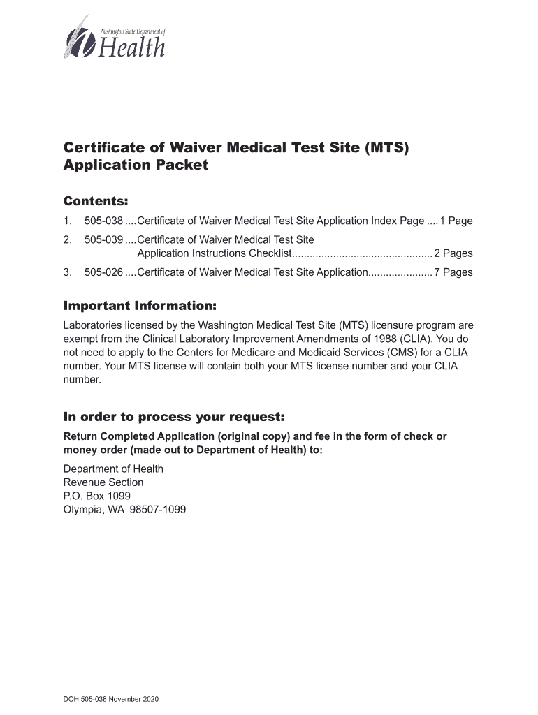 Get the free Certificate of Waiver Medical Test Site - Washington State ...
