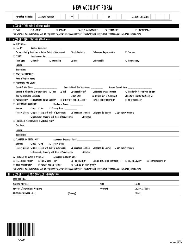 The New Account Form is a financial document used by individuals and entities to open a new investment account with a broker-dealer.