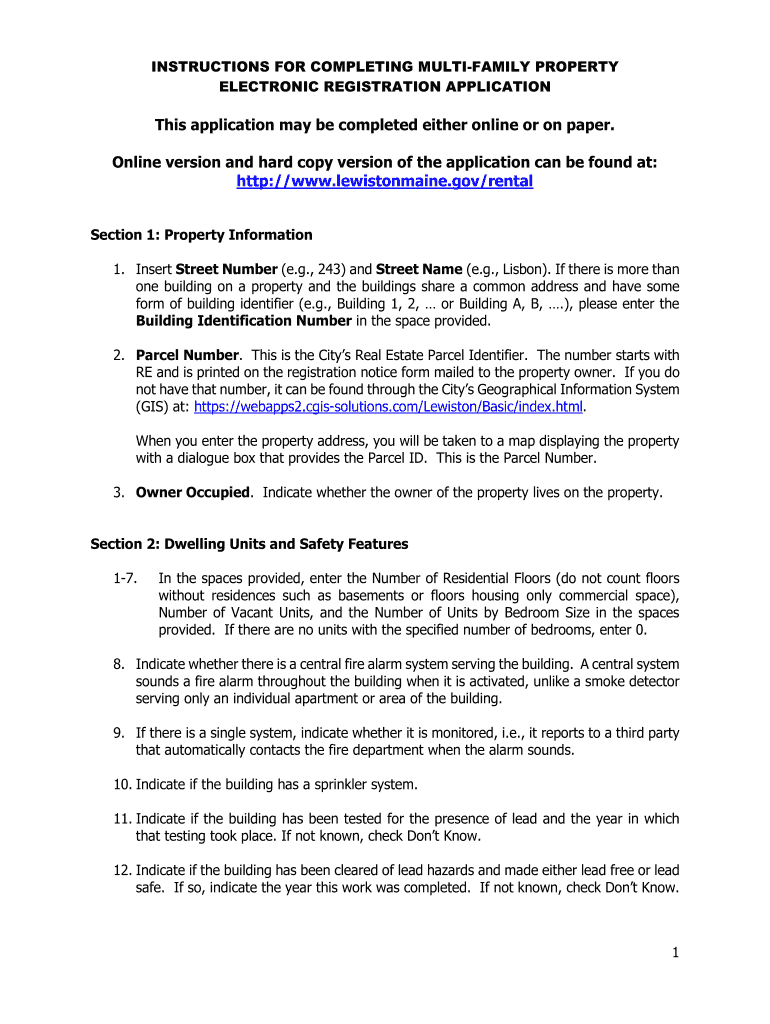 INSTRUCTIONS FOR COMPLETING MULTIFAMILY PROPERTY ELECTRONIC REGISTRATION Applications application may be completed either online or on paper. Online version and hard copy version of the application