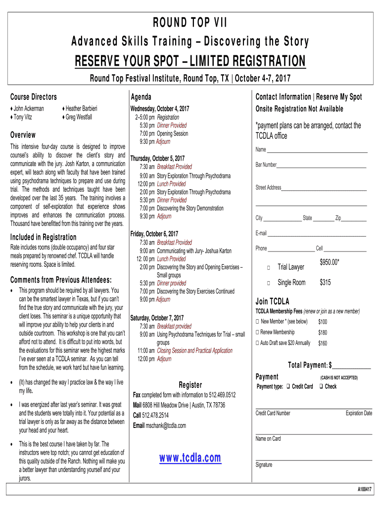 Get the free ROUND TOP VII Advanced Skills Training - tcdla.com