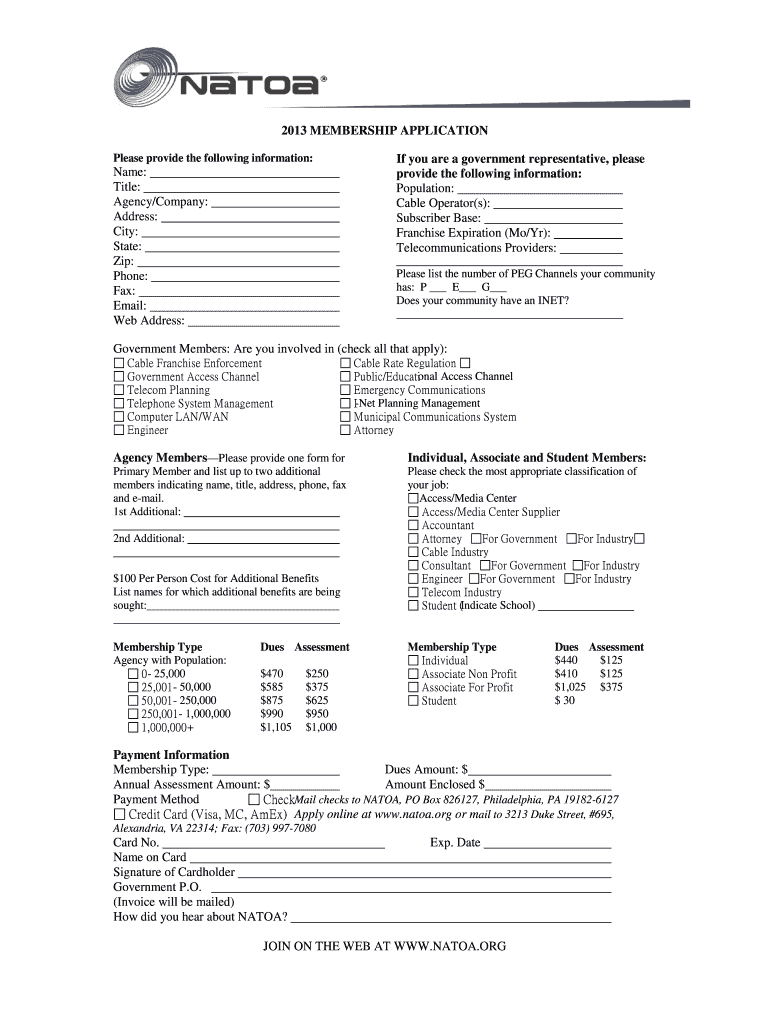2013 MEMBERSHIP APPLICATION Please provide the following information: If you are a government representative, please provide the following information: Population: Cable Operator(s): Subscriber Base:
