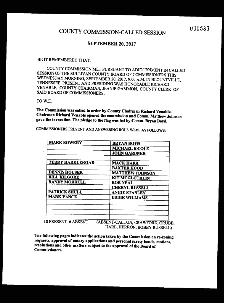 Get the free PDF county commission-regular session - Sullivan County Clerk