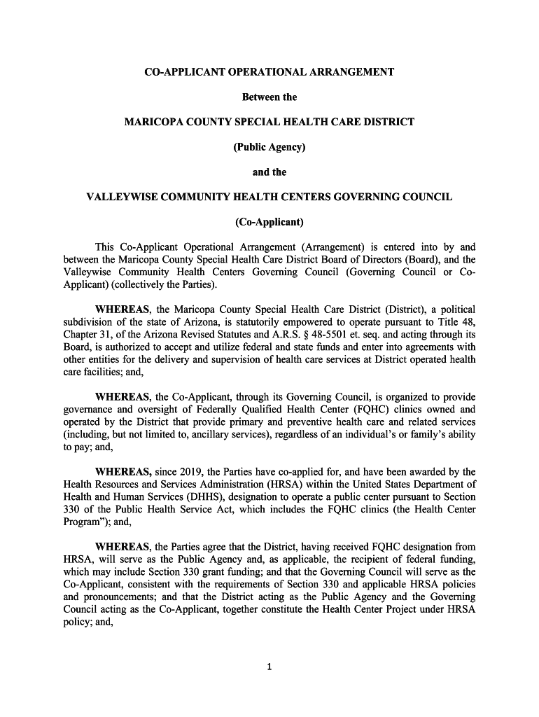 VALLEYS COMMUNITY HEALTH CENTERS GOVERNING COUNCIL