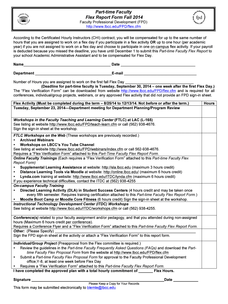 Get the free Flex Report Form Fall Semester - lbcc