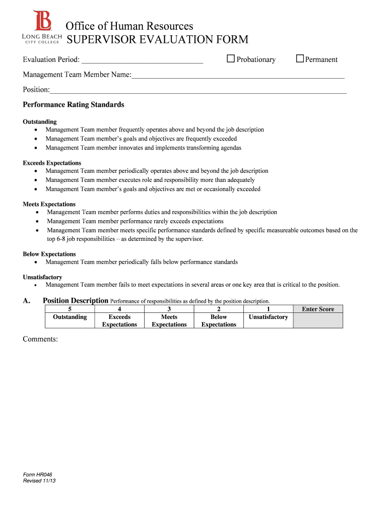 Get the free Supervisor Evaluation Form