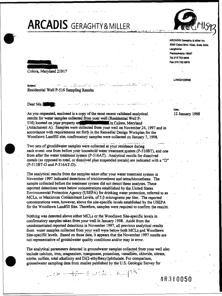 ARCAD1S GERAGHTY&MILLER ARCAD1S Gravity & Miller Inc 3000 Cabot Blvd. West. Suite 3004 Lang home Pennsylvania 19047 Tel 215 '752 6840 Fax 215 752 6879Colora, Maryland 21917 LANGHORNE Subject: '. T.