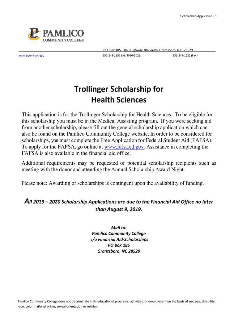 Get the free Trollinger Scholarship Application - Pamlico Community College