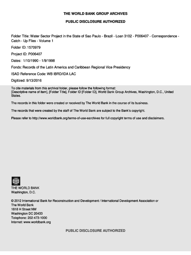 Get the free Water Sector Project in the State of Sao Paulo - Brazil - Loan 3102 - P006407 - Corr...