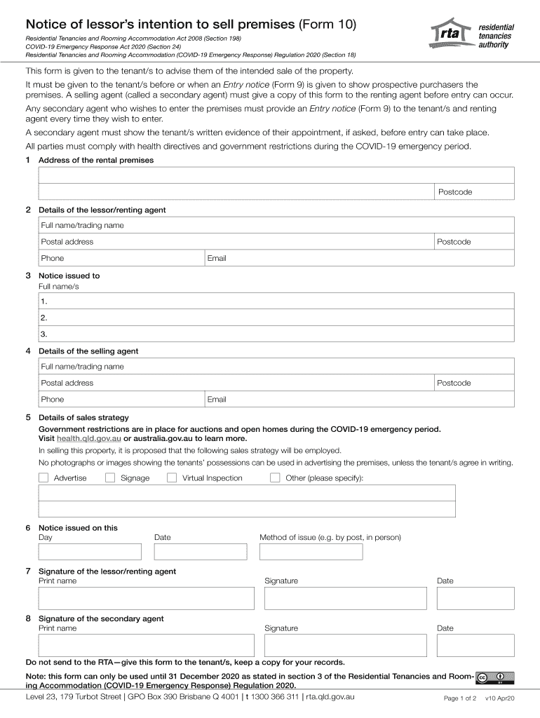 Get the free Notice of lessors intention to sell premises (Form 10)