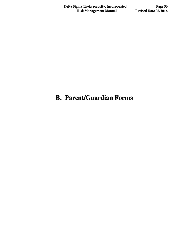 Delta Sigma Theta Sorority, Incorporated Risk Management Manual. Parent/Guardian Forms Page 53 Revised Date 06/2016Delta Sigma Theta Sorority, Incorporated Risk Management Manual Page 54 Revised Date